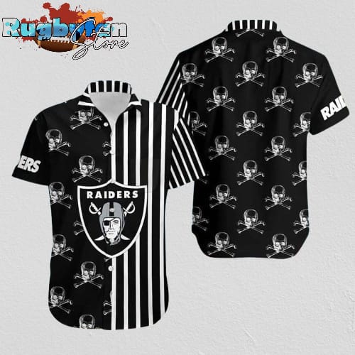 Las Vegas Raiders Hawaiian Shirt Stripes And Skull All Over Print